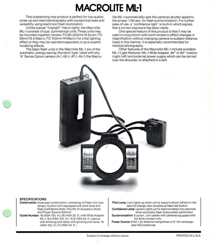 I have my Canon Macrolite ML-1 electronic flash set for sale.