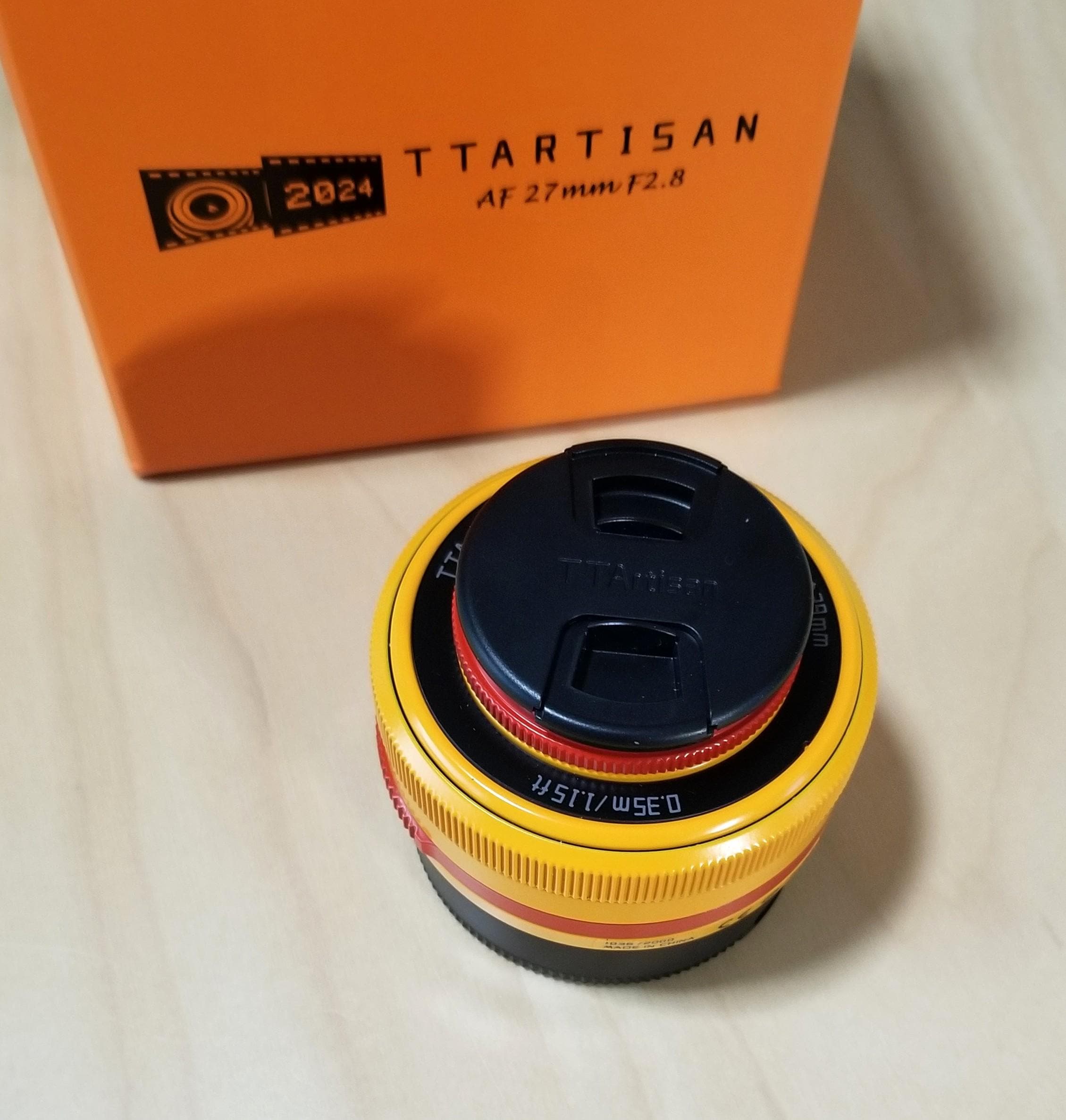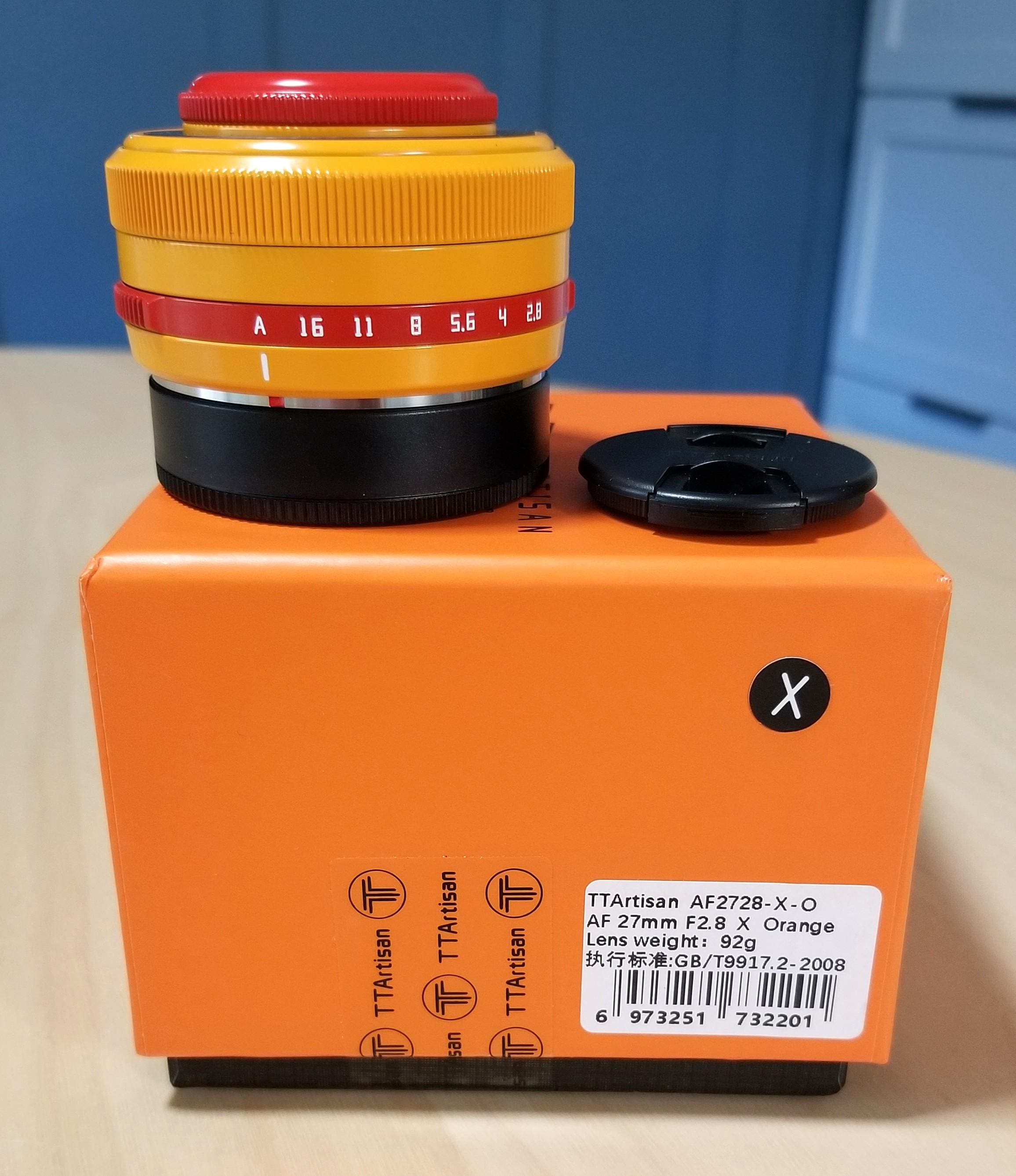 TT Artisan AF 27mm f2.8 Limited Edition Orange/Yellow Lens for Fujifilm X-Mount Digital Mirrorless Cameras - Boxed - Mint Condition