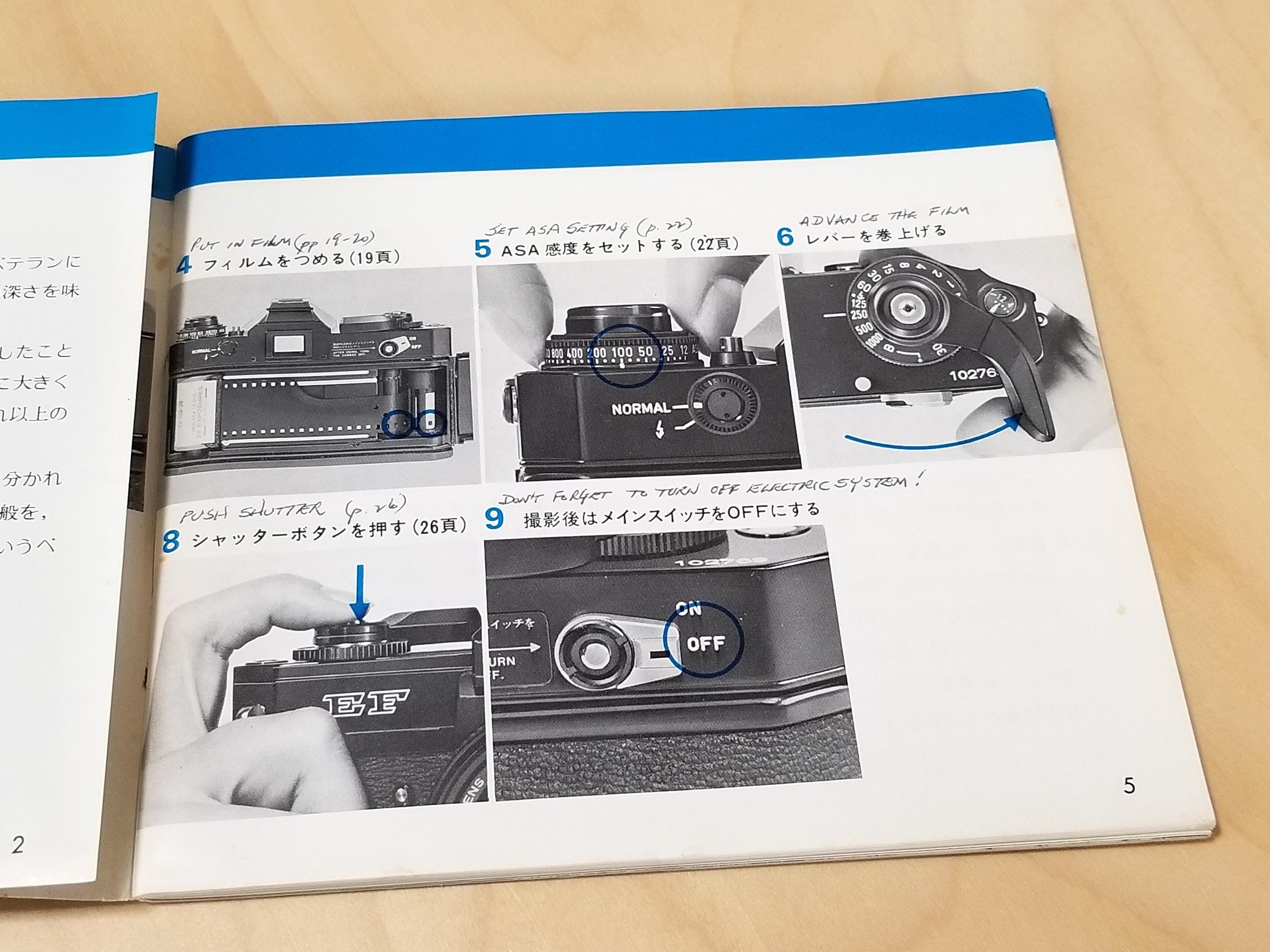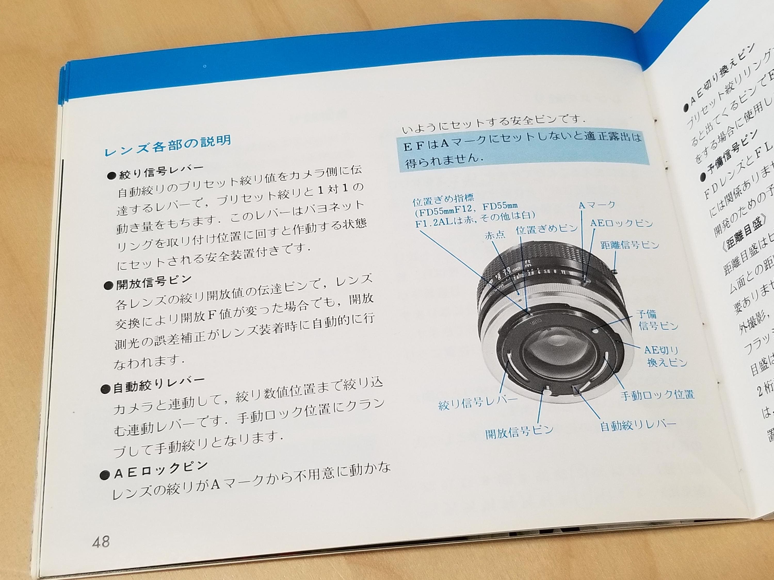 Canon EF 35mm SLR Film Camera Instruction Books - 1976 - Original, Not a Copy - 70 Pages - Japanese Edition - Excellent Condition