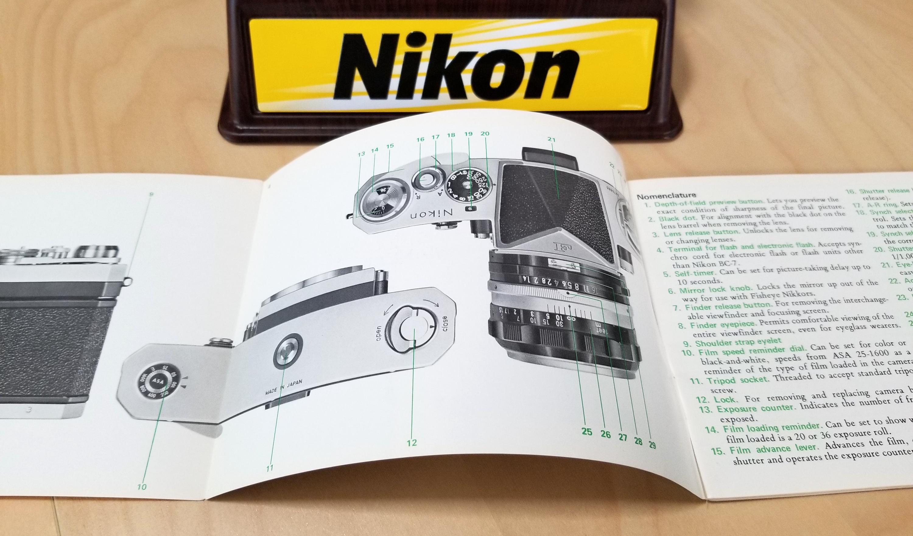 w/ Original Nikon F Instruction Book and Nikon Body Cap.