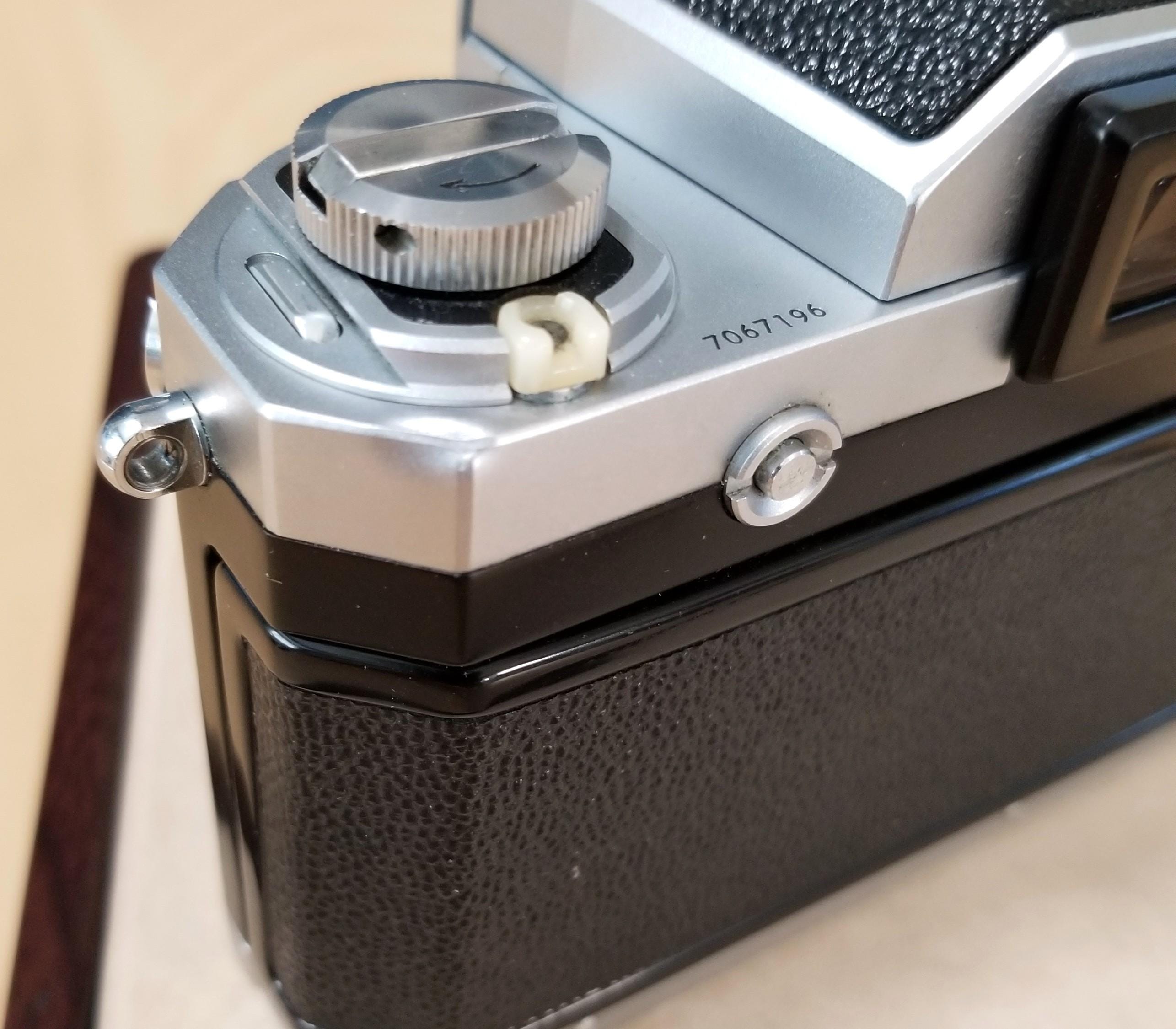My gorgeous Nikon F 35mm SLR film camera is available for purchase. It's been thoroughly tested and works as it was designed. It's super clean inside and out. The only detracting mark is the small dent near the film rewind knob on the top plate (see pic #16). This camera body was made from December 1969 to January 1970. The serial number is 7067196. The instruction book is complete and in excellent condition.