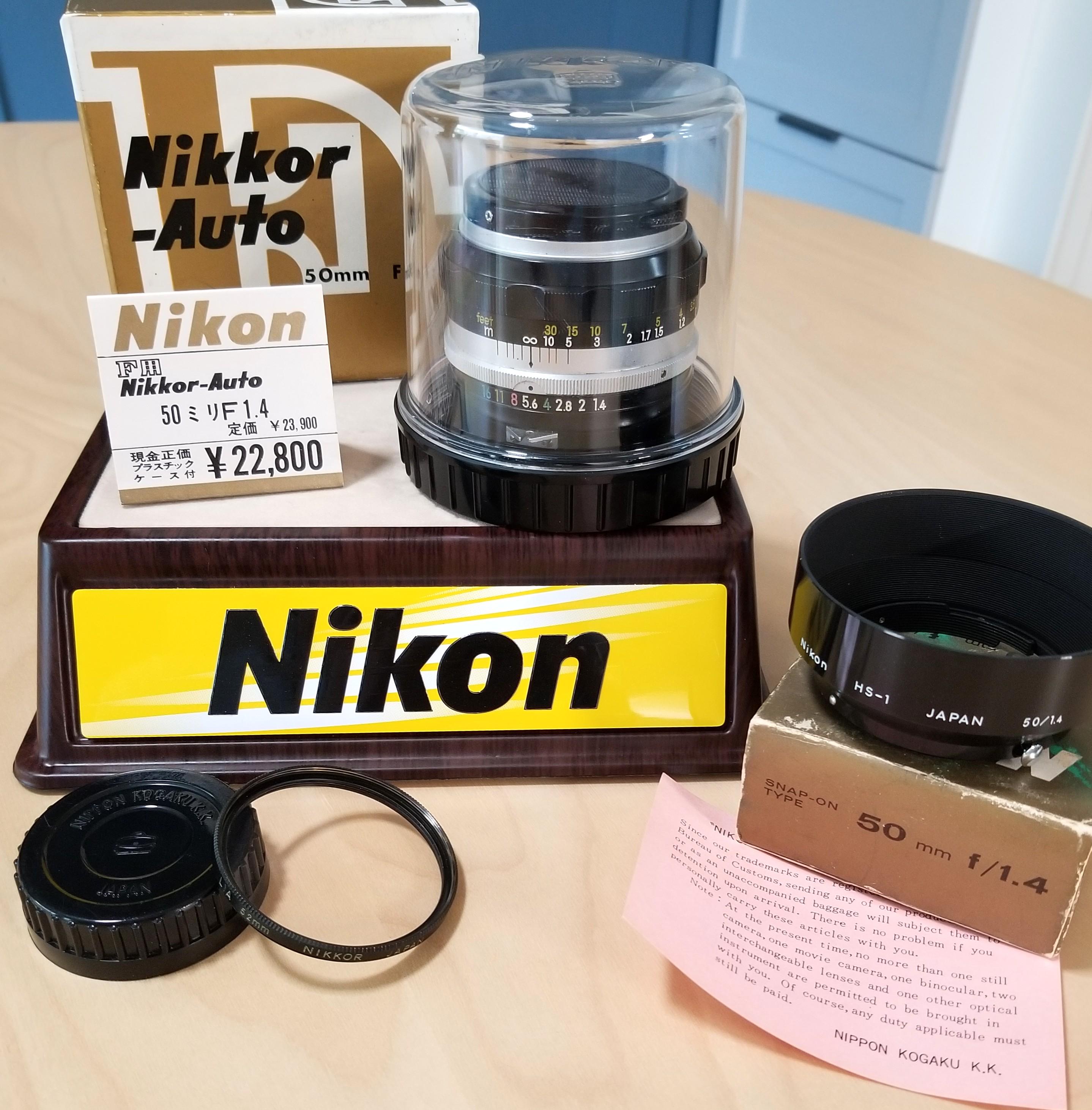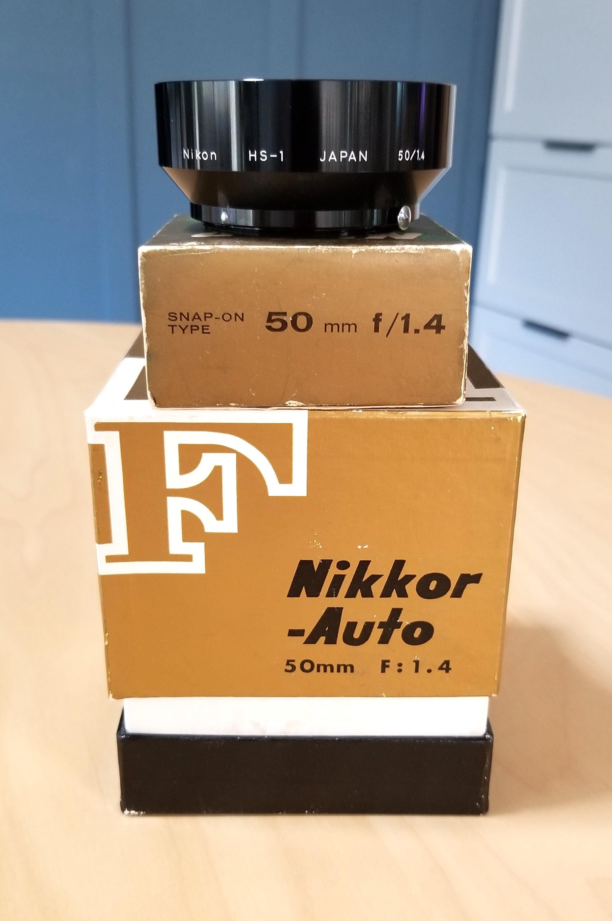 Nikon F Nikkor-Auto S 50mm f1.4 Lens Set w/ Box, Hood, Filter, Case, Caps, Papers