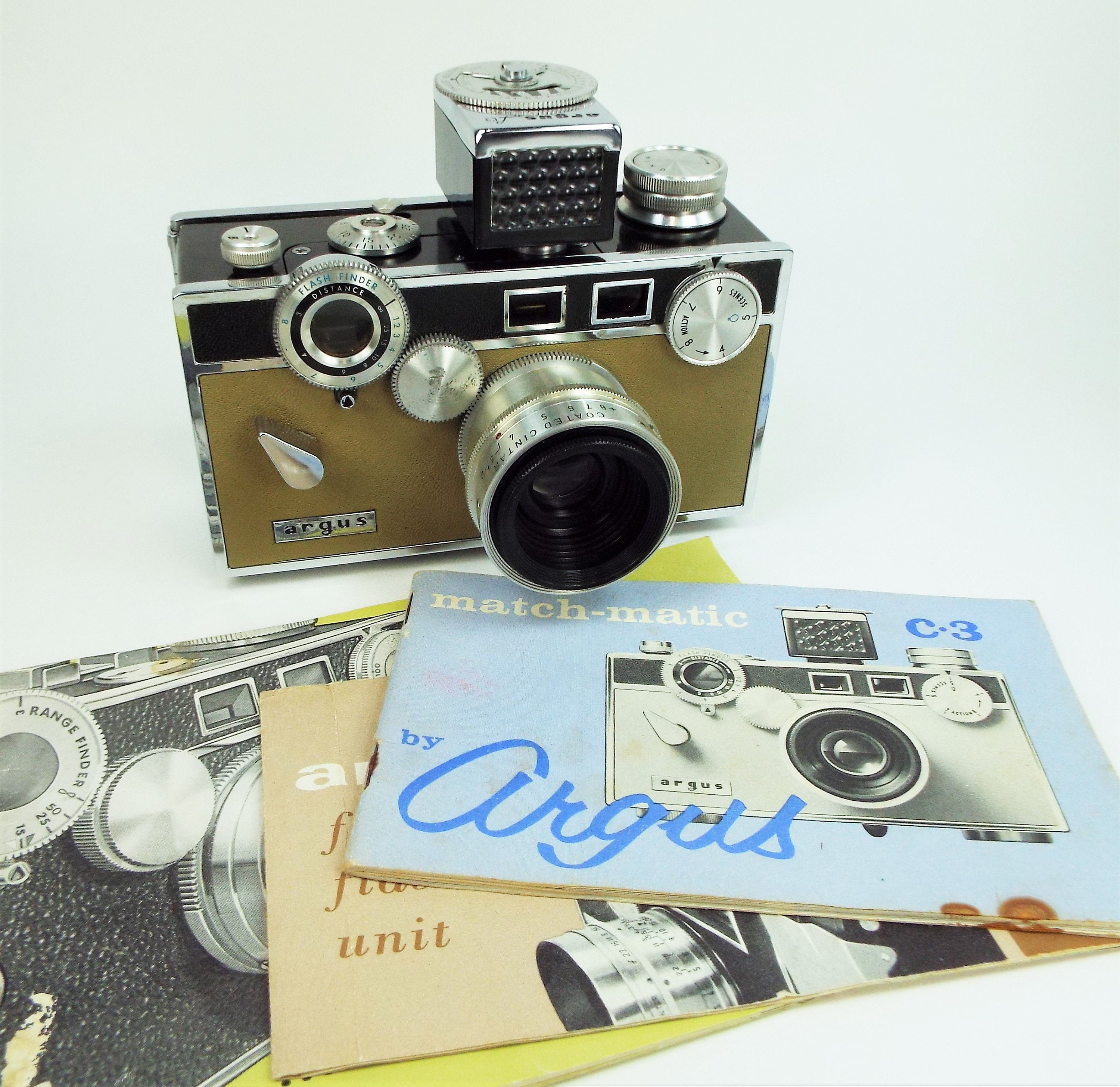 Vintage Argus Match-Matic C3 35mm Film Camera w/ Leather Case, Light Meter, Instructions