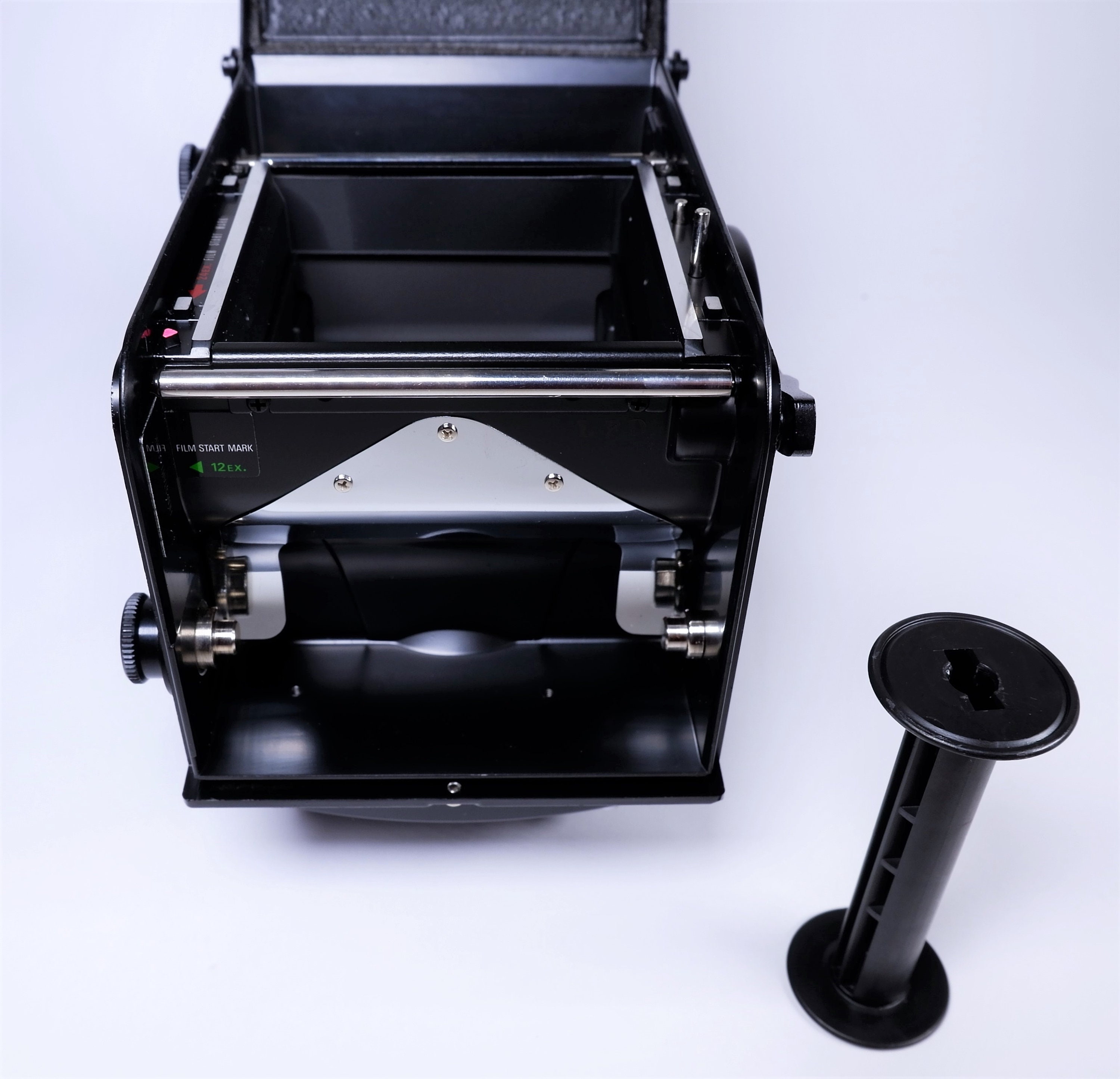 Takes large 6x6 cm negatives and slides.